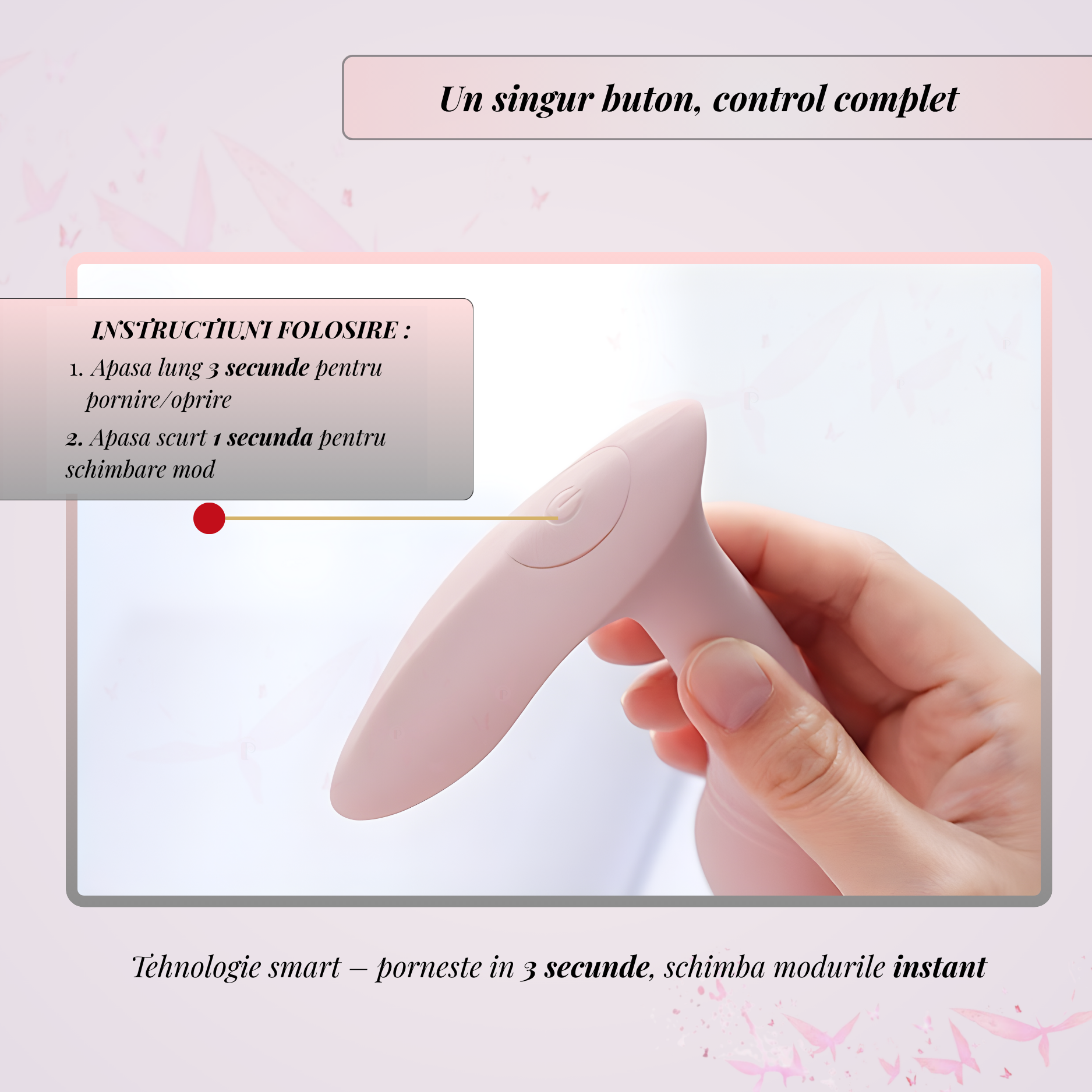 Cu un singur buton intuitiv, controlezi toate modurile de vibrație: