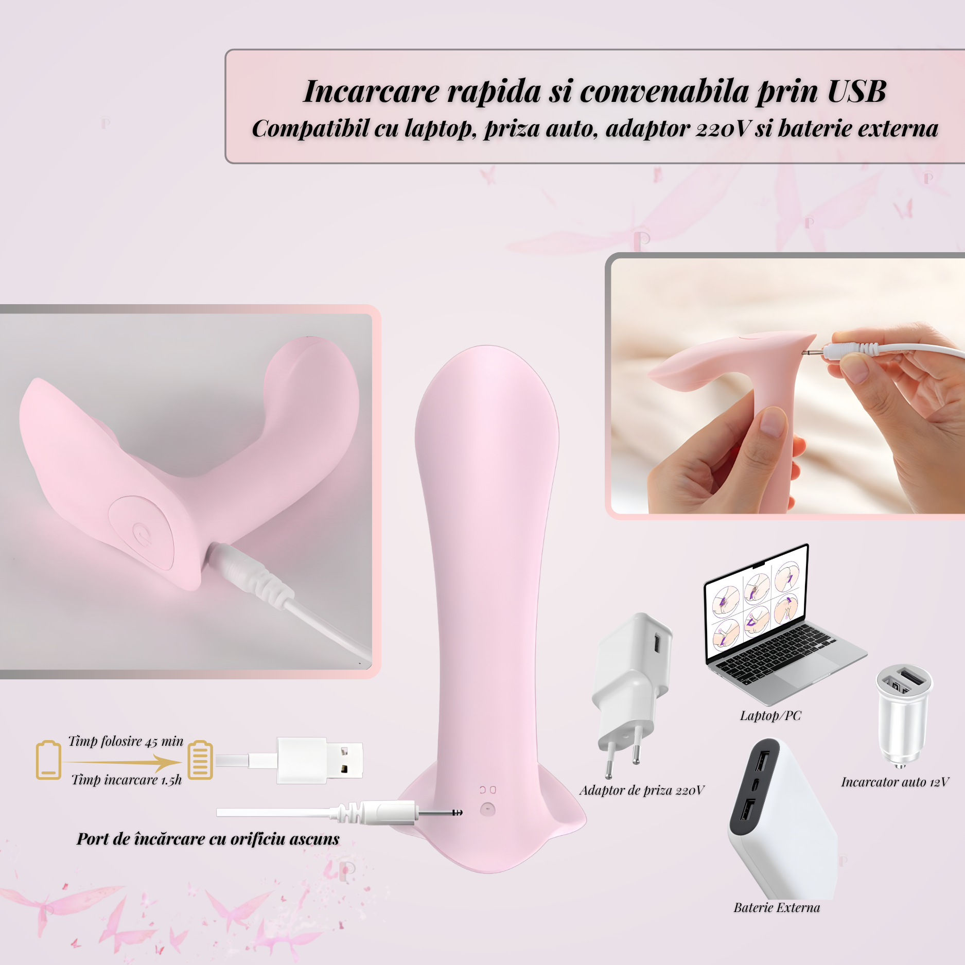Convenabil, oriunde te-ai afla. PassionPulse se reîncarcă prin port USB ascuns, fiind compatibil cu laptop, adaptor 220V, auto și power bank.